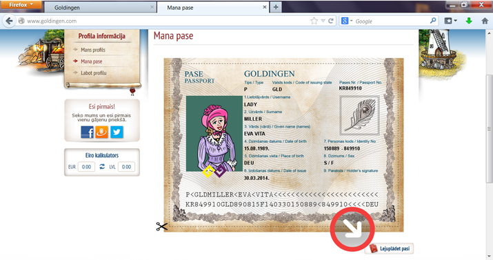 Kā es pareizi varu izdrukāt personas datus priekš Goldingen pases?